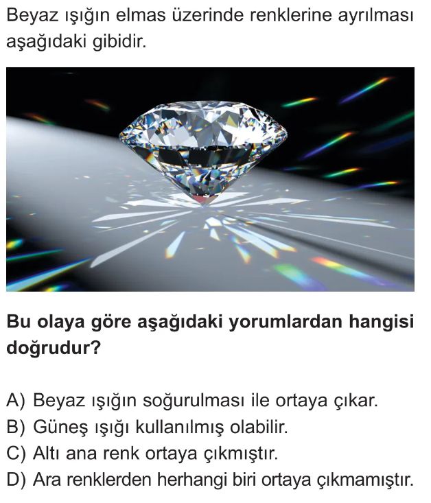 6. Sınıf Beyaz Işık ve Renkler Test 3