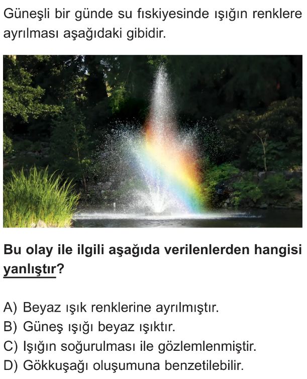 6. Sınıf Beyaz Işık ve Renkler Test 4