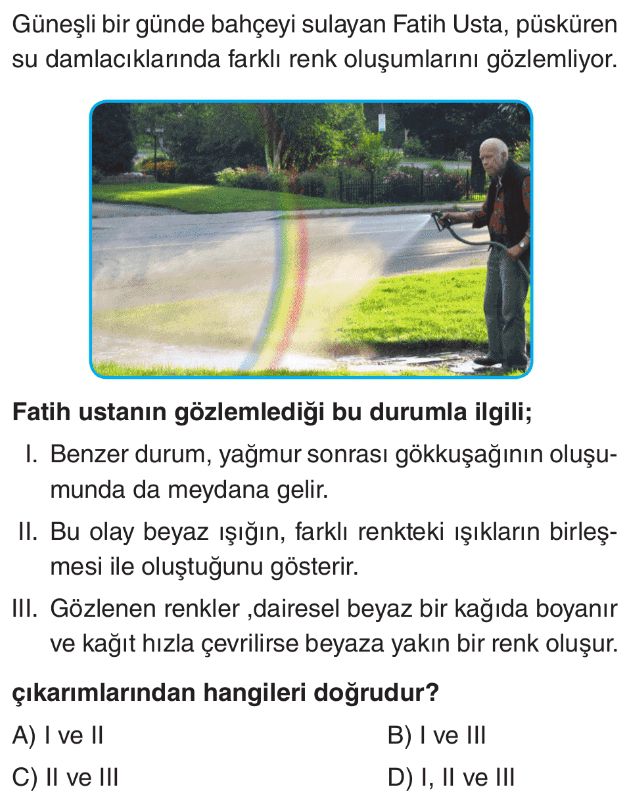 6. Sınıf Beyaz Işık ve Renkler Test 4