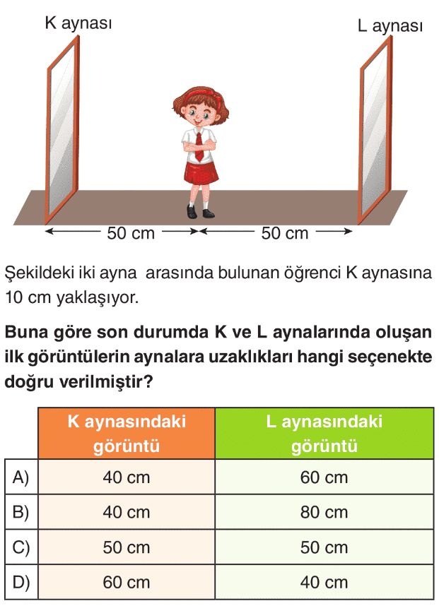 6. Sınıf Işığın Yansıması ve Renkler Ünite Değerlendirme Test 1