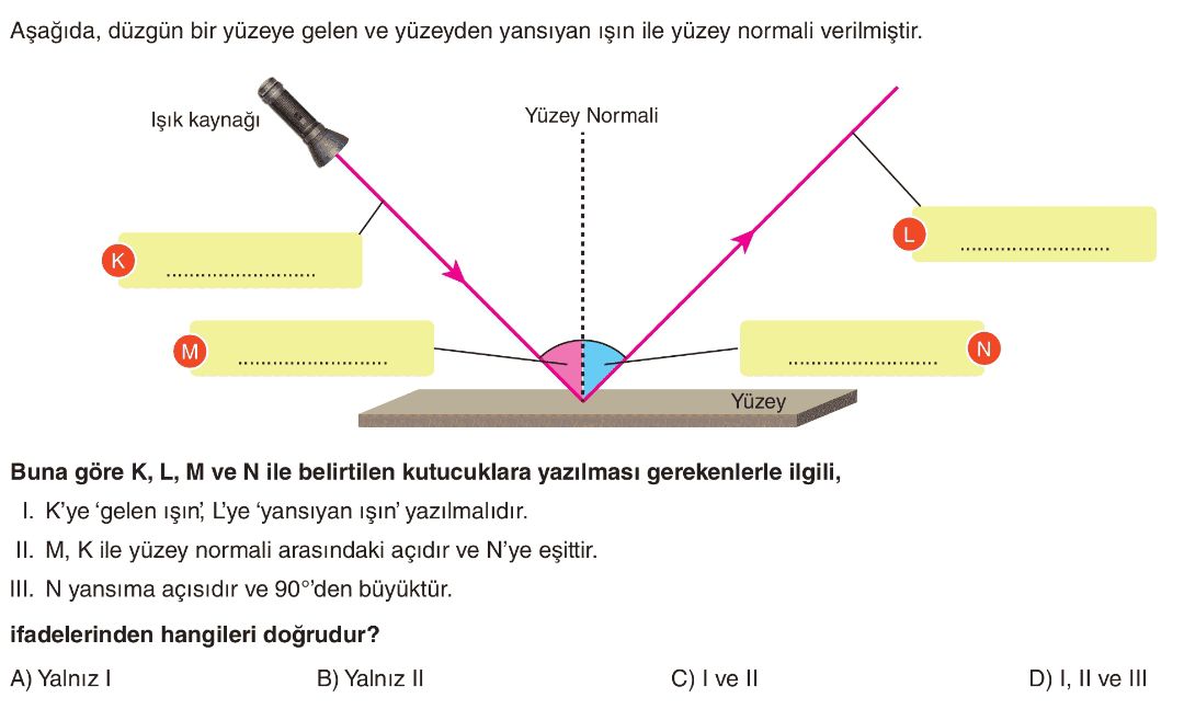 6. Sınıf Işığın Yansıması ve Renkler Ünite Değerlendirme Test 1