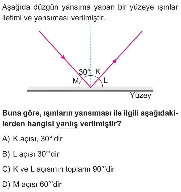 6. Sınıf Işığın Yansıması ve Renkler Ünite Değerlendirme Test 1