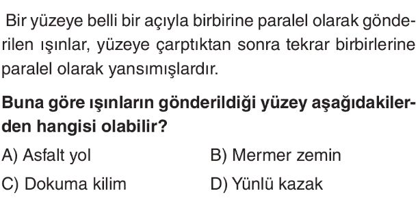 6. Sınıf Işığın Yansıması ve Renkler Ünite Değerlendirme Test 1