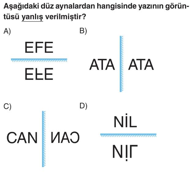 6. Sınıf Işığın Yansıması ve Renkler Ünite Değerlendirme Test 2