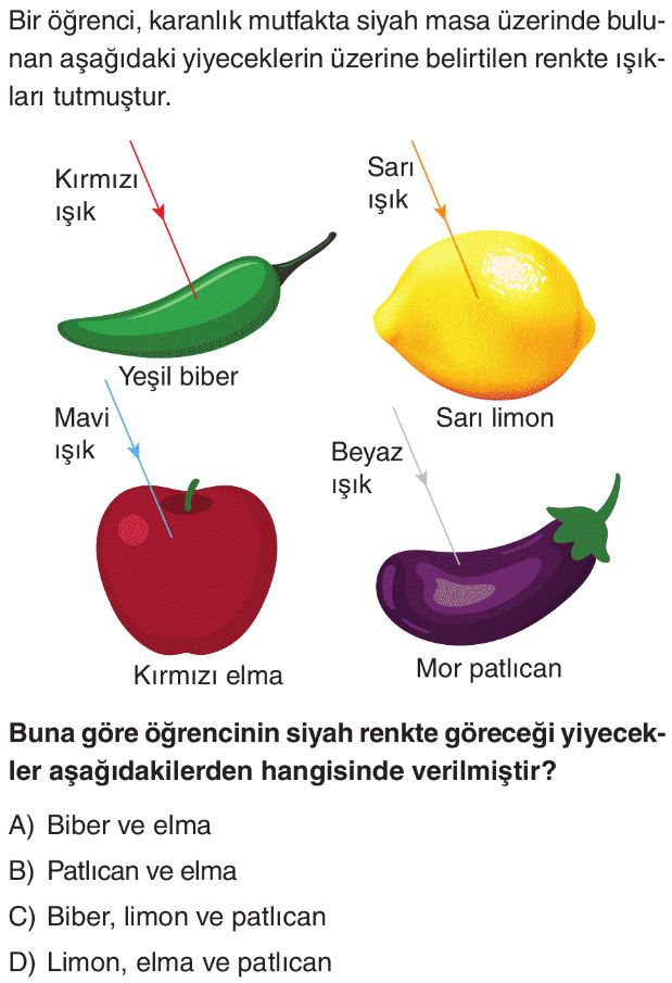 6. Sınıf Işığın Yansıması ve Renkler Ünite Değerlendirme Test 2