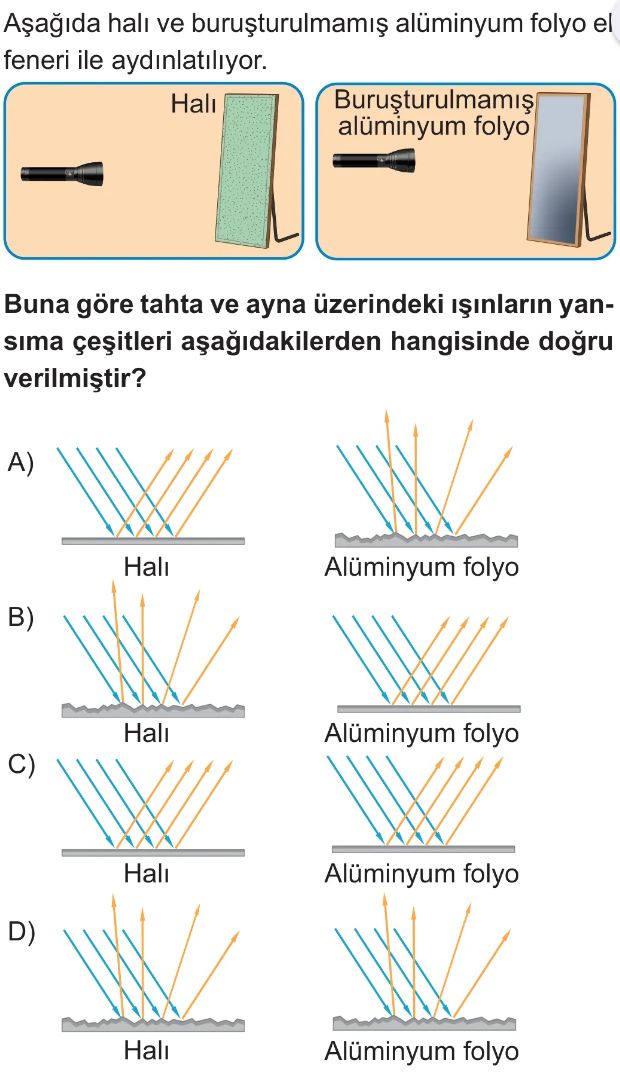6. Sınıf Işığın Yansıması ve Renkler Ünite Değerlendirme Test 3