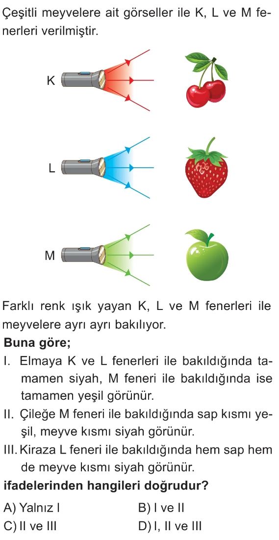 6. Sınıf Işığın Yansıması ve Renkler Ünite Değerlendirme Test 3