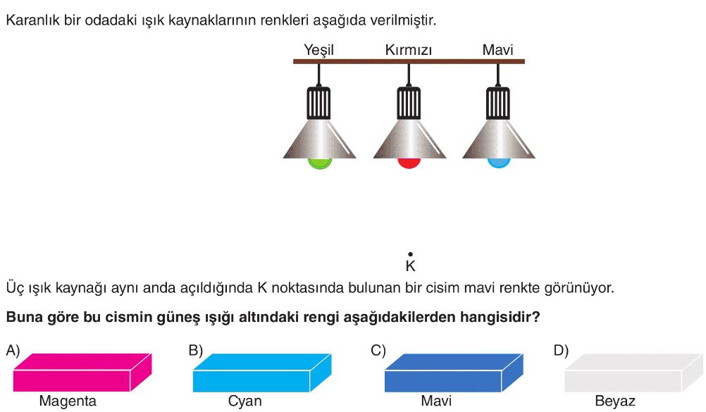 6. Sınıf Işığın Yansıması ve Renkler Ünite Değerlendirme Test 3