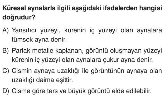 6. Sınıf Işığın Yansıması ve Renkler Ünite Değerlendirme Test 4