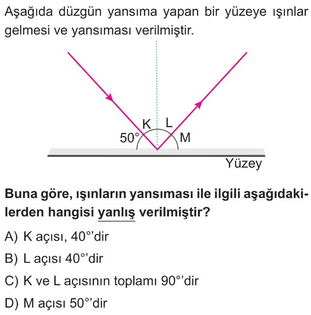 6. Sınıf Işığın Yansıması ve Renkler Ünite Değerlendirme Test 6