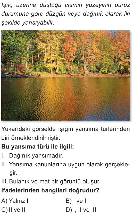 6. Sınıf Işığın Yansıması ve Renkler Ünite Değerlendirme Test 6