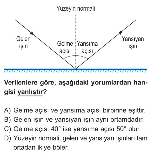 6. Sınıf Işığın Yansıması ve Renkler Ünite Değerlendirme Test 7
