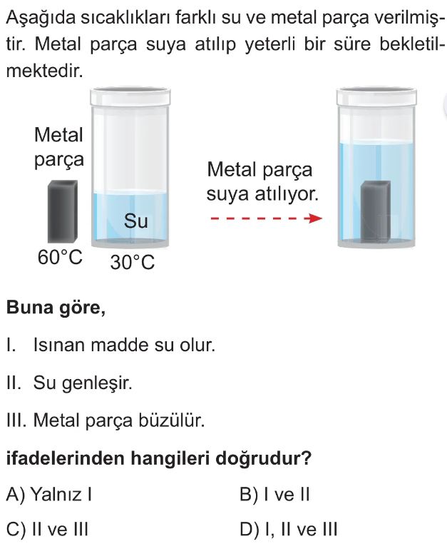 6. Sınıf Genleşme ve Büzülme (Isı ve Madde Etkileşimi) Test 5