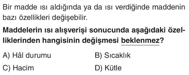 6. Sınıf Genleşme ve Büzülme (Isı ve Madde Etkileşimi) Test 5