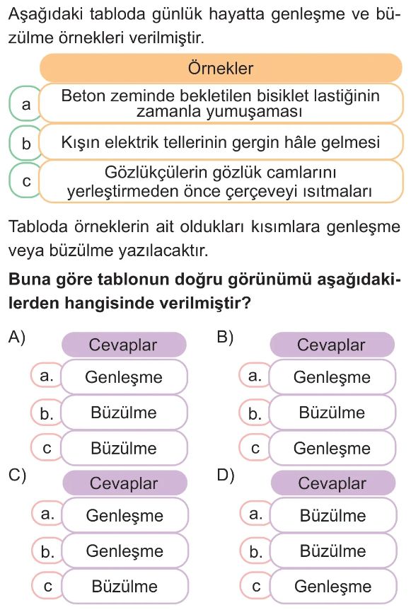 6. Sınıf Genleşme ve Büzülme (Isı ve Madde Etkileşimi) Test 6