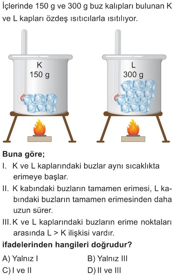 6. Sınıf Maddenin Hâl Değişim Noktaları Test 1