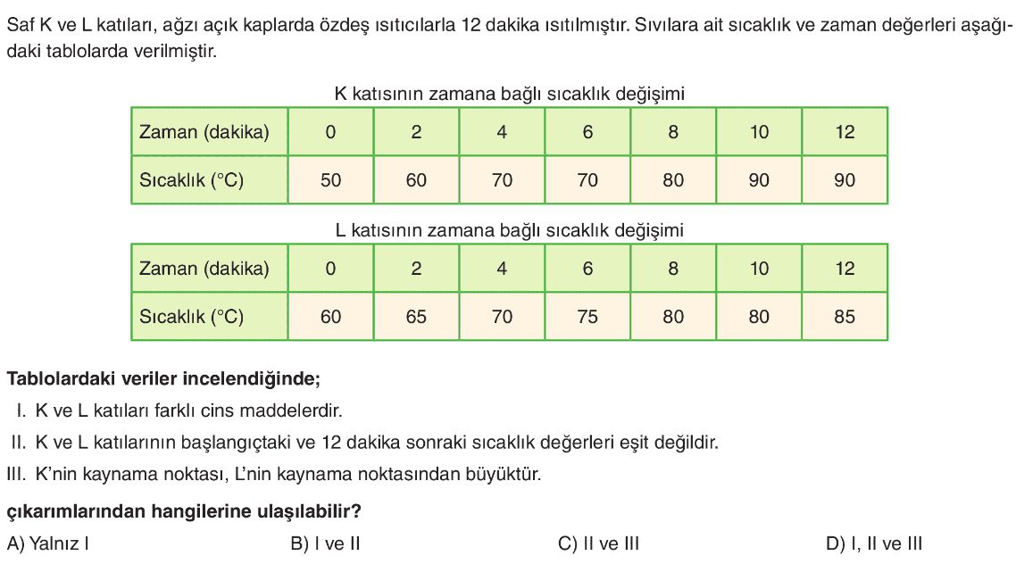 6. Sınıf Maddenin Hâl Değişim Noktaları Test 1
