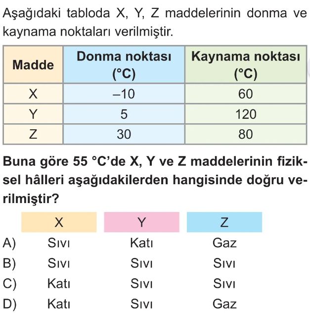 6. Sınıf Maddenin Hâl Değişim Noktaları Test 1