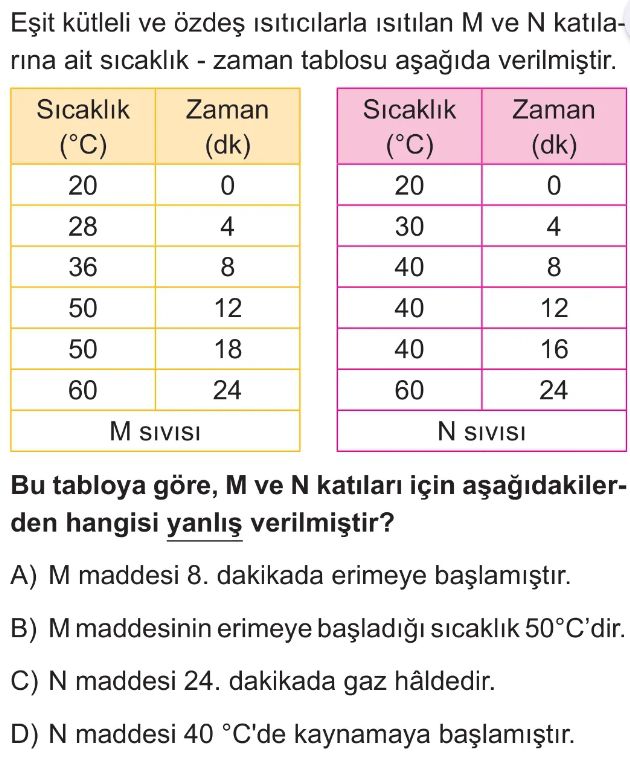 6. Sınıf Maddenin Hâl Değişim Noktaları Test 2