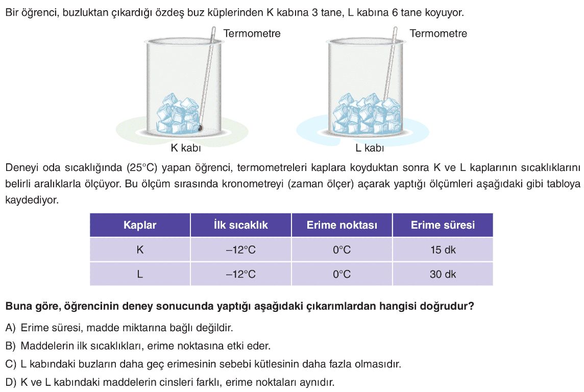 6. Sınıf Maddenin Hâl Değişim Noktaları Test 3