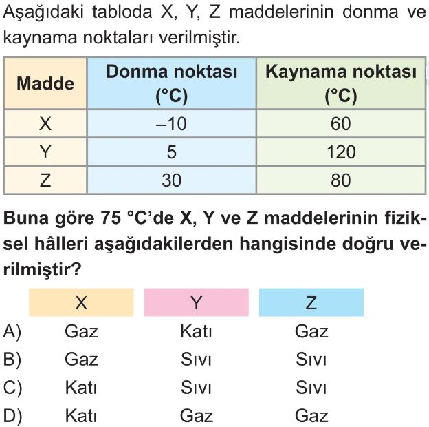 6. Sınıf Maddenin Hâl Değişim Noktaları Test 3