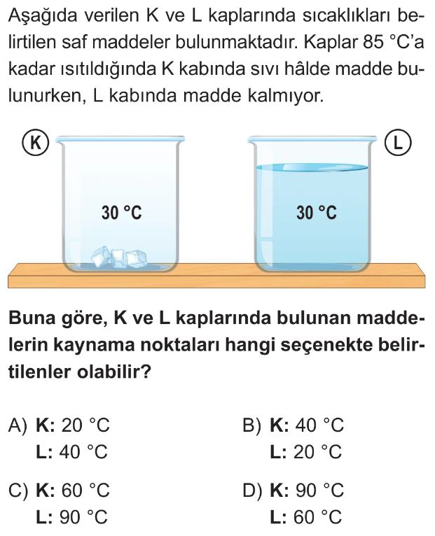 6. Sınıf Maddenin Hâl Değişim Noktaları Test 3