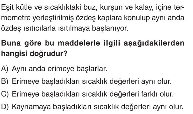 6. Sınıf Maddenin Hâl Değişim Noktaları Test 4