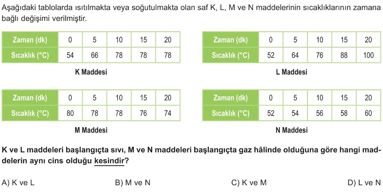 6. Sınıf Maddenin Hâl Değişim Noktaları Test 5