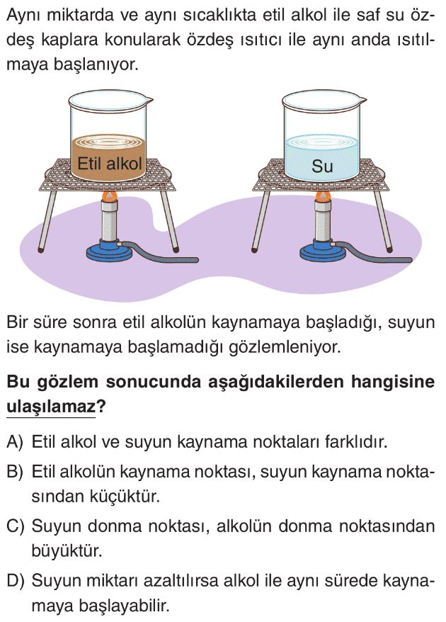6. Sınıf Maddenin Hâl Değişim Noktaları Test 5