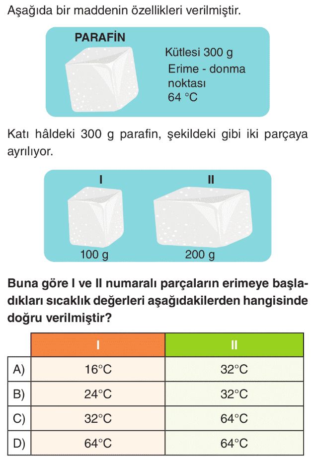 6. Sınıf Maddenin Hâl Değişim Noktaları Test 5