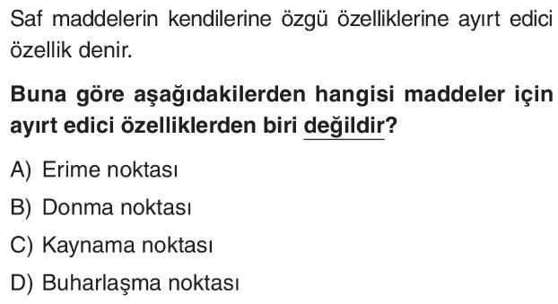 6. Sınıf Maddenin Hâl Değişim Noktaları Test 6