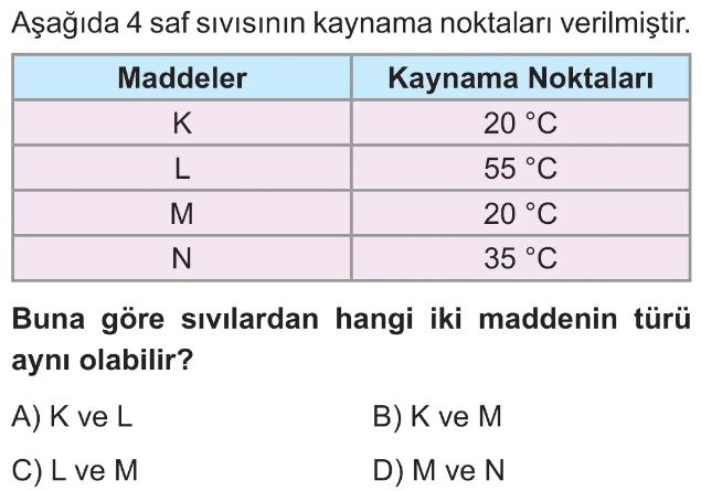 6. Sınıf Maddenin Hâl Değişim Noktaları Test 6