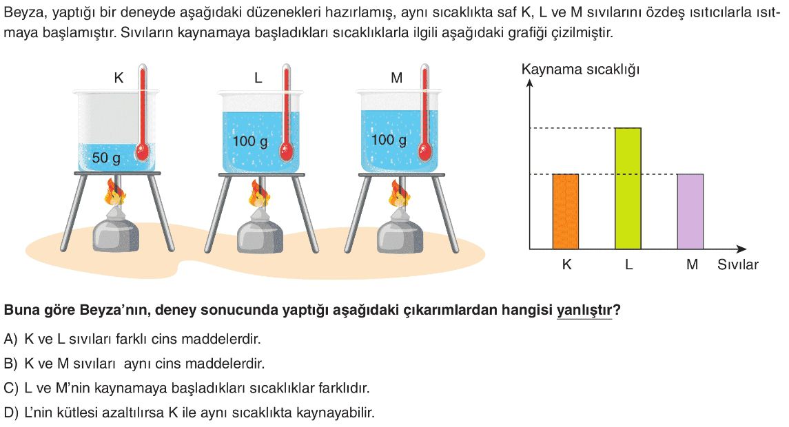 6. Sınıf Maddenin Hâl Değişim Noktaları Test 7