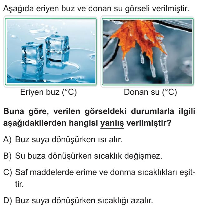 6. Sınıf Maddenin Hâl Değişim Noktaları Test 7