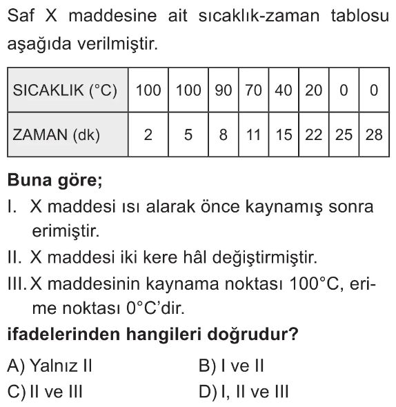 6. Sınıf Maddenin Hâl Değişim Noktaları Test 7