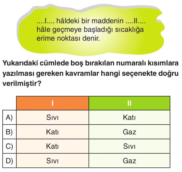 6. Sınıf Maddenin Hâl Değişim Noktaları Test 7