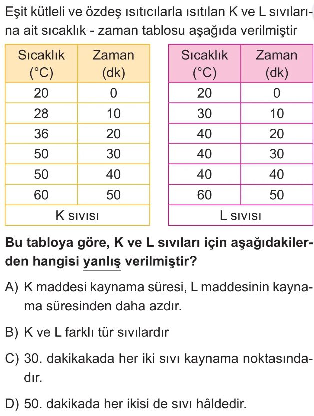 6. Sınıf Maddenin Hâl Değişim Noktaları Test 7