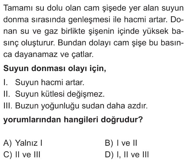 6. Sınıf Maddenin Ayırt Edici Özellikleri Ünite Değerlendirme Test 1