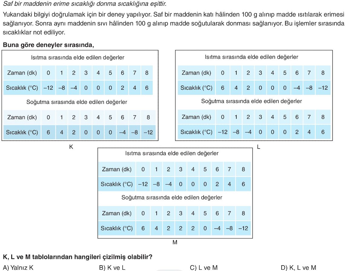 6. Sınıf Maddenin Ayırt Edici Özellikleri Ünite Değerlendirme Test 1