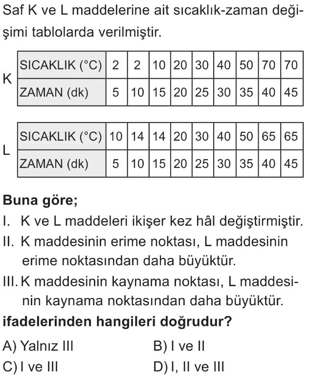 6. Sınıf Maddenin Ayırt Edici Özellikleri Ünite Değerlendirme Test 2