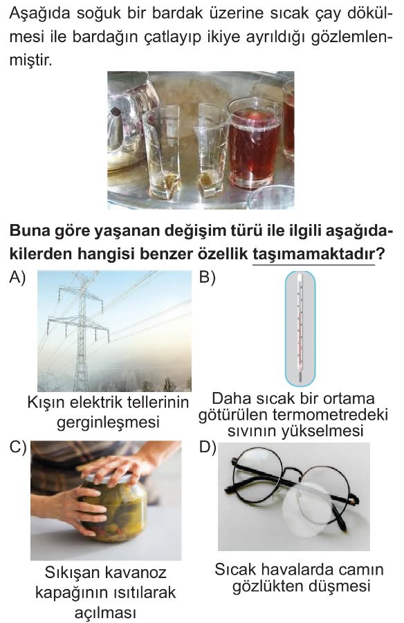 6. Sınıf Maddenin Ayırt Edici Özellikleri Ünite Değerlendirme Test 2