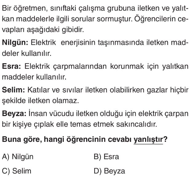 6. Sınıf Elektriğin İletimi Test 2