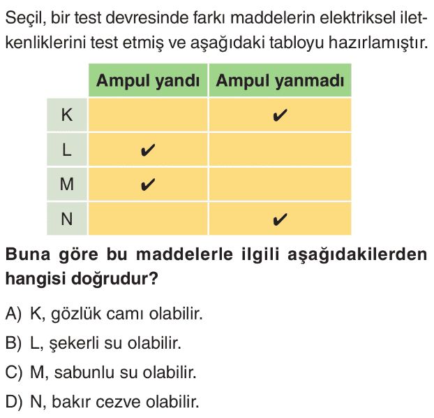 6. Sınıf Elektriğin İletimi Test 3