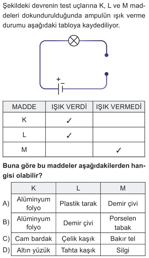 6. Sınıf Elektriğin İletimi Test 3
