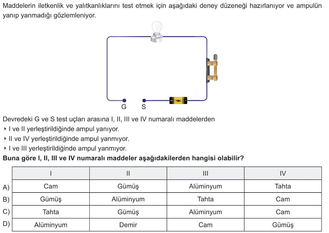 6. Sınıf Elektriğin İletimi Test 5