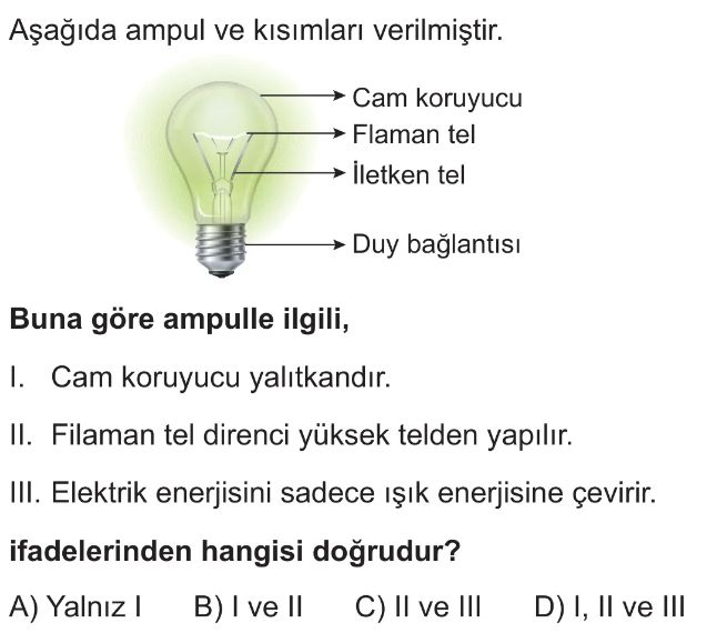 6. Sınıf Elektriksel Direnç ve Bağlı Olduğu Faktörler Test 1