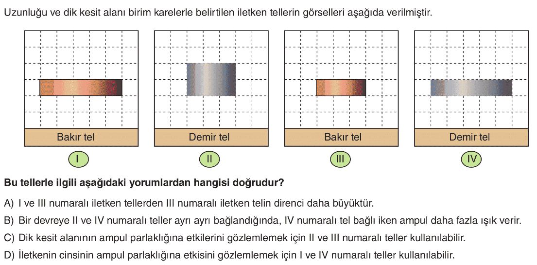 6. Sınıf Elektriksel Direnç ve Bağlı Olduğu Faktörler Test 1