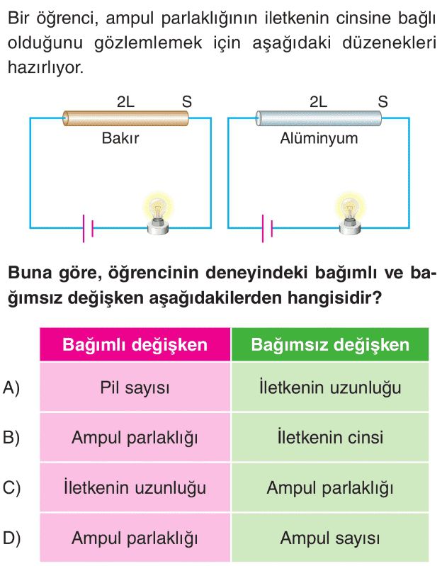 6. Sınıf Elektriksel Direnç ve Bağlı Olduğu Faktörler Test 2