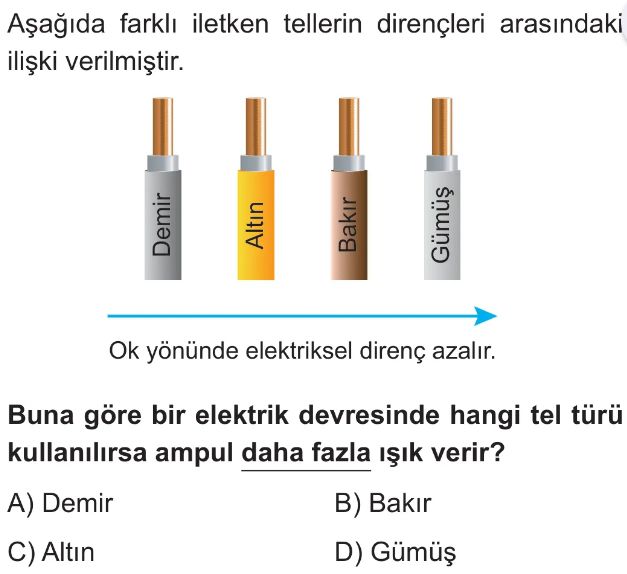 6. Sınıf Elektriksel Direnç ve Bağlı Olduğu Faktörler Test 2