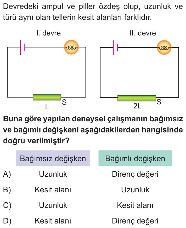 6. Sınıf Elektriksel Direnç ve Bağlı Olduğu Faktörler Test 2